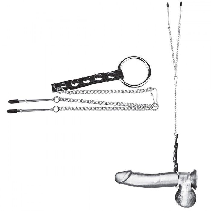 Кольцо на пенис с зажимами на соски 100% PVC STRAP WITH METAL SNAP.