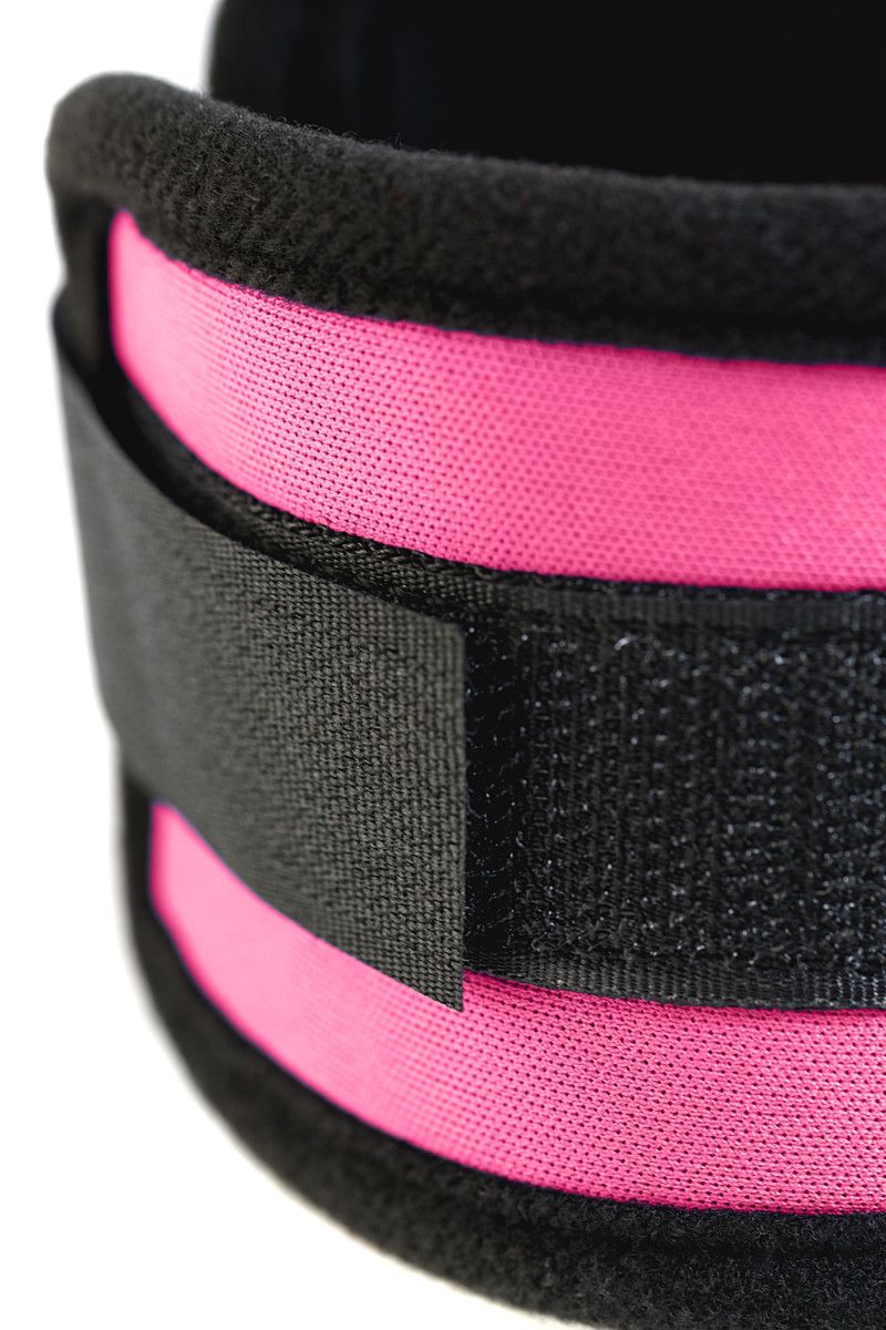 Оковы на ноги из неопрена розовые. Мягкие оковы с застежкой велкро, позволяющей максимально регулировать объем. Между собой манжеты соединены карабинами.